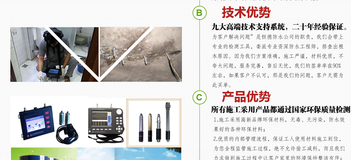 深圳恒德公司漏水維修,防水補漏工程,建筑加固,公司采用進口專業(yè)漏水檢測儀等專業(yè)設備。免砸瓷磚,針對房屋易漏水難檢測地方,家庭衛(wèi)生間,廚房、陽臺等,專業(yè)快速檢測出漏水滲水問題。對建筑加固是利用碳纖維、粘鋼、高壓灌漿對建筑進行加強加固工程,全國地區(qū)均可上門到場檢測維修。恒德公司提供上門看現(xiàn)場申報施工價格,現(xiàn)場勘查、制定施工方案、進行檢測維修等服務。