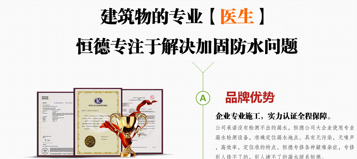 恒德專注全國地區(qū)注漿、防水、堵漏、加固工程,公司實力認證,質(zhì)量可靠,值得信賴!